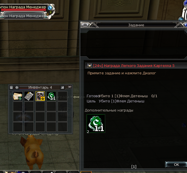 это уже уже после прохождения квеста Картеллы, чтобы награду получить ещё и флема нужно убитьэто что за квесты такие)