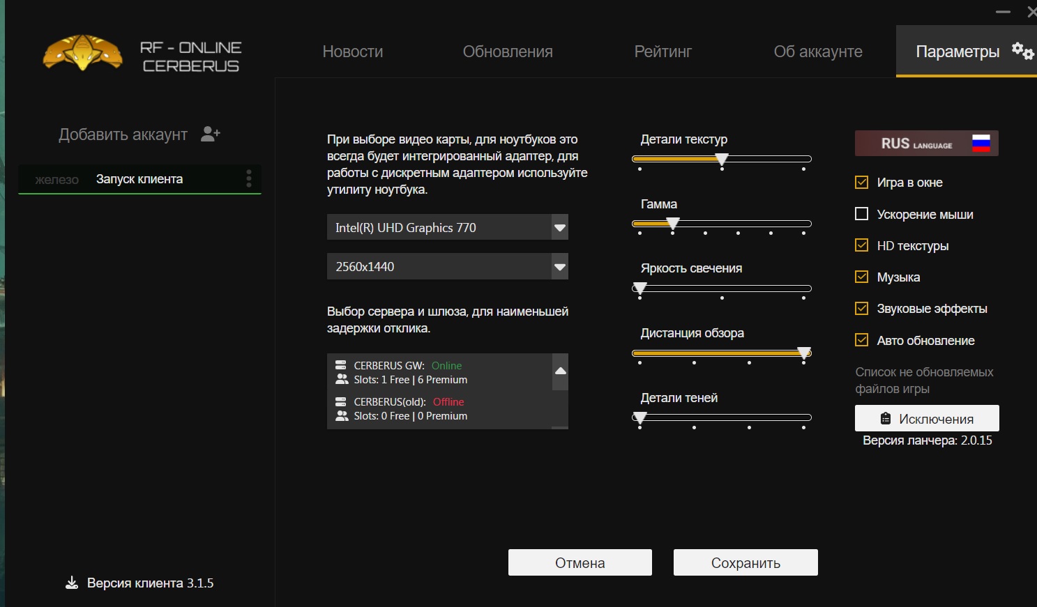 проблемы с графическими настройками