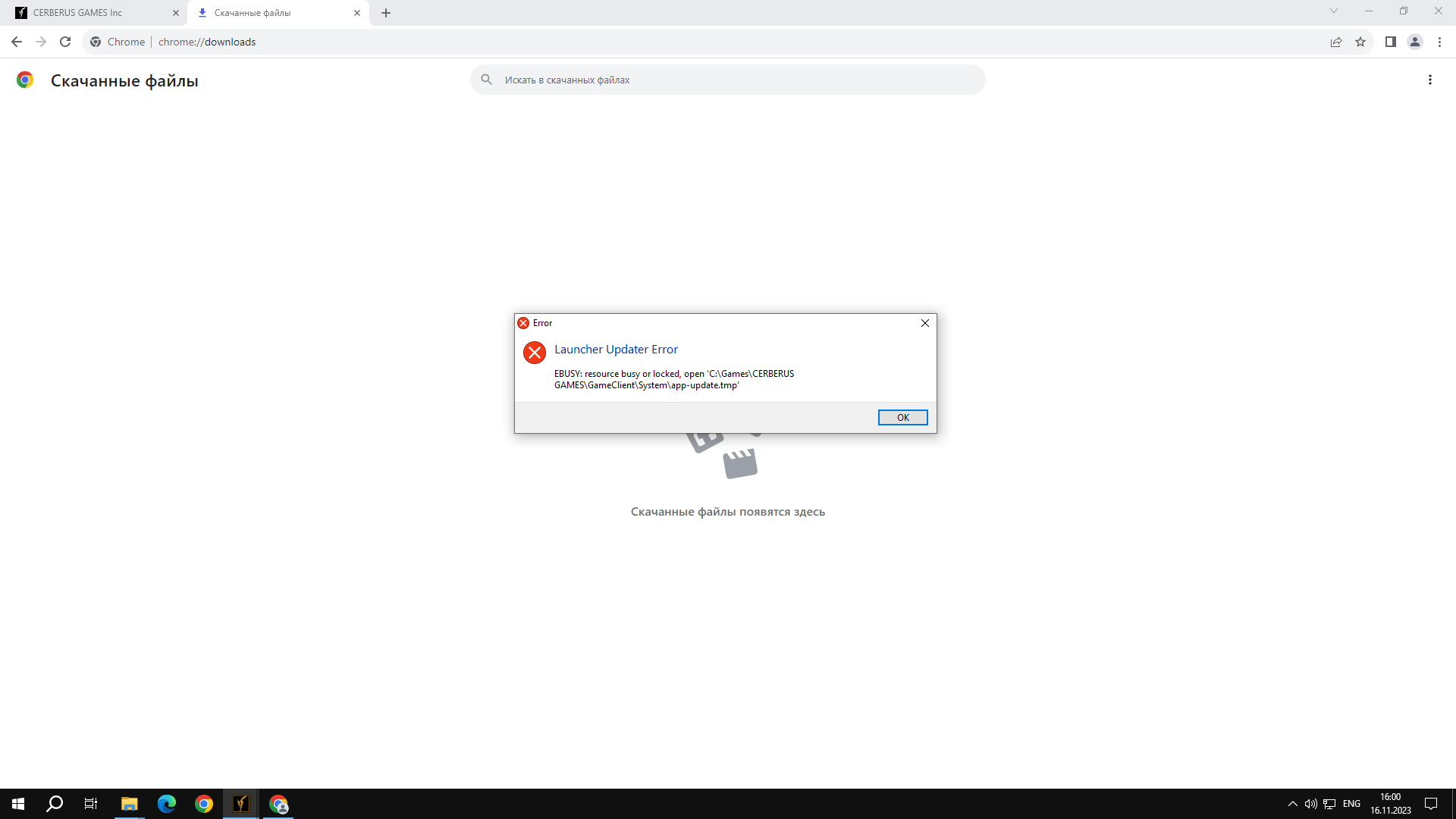 Отключите все процессы лаунчера в диспетчере задач или перезагрузите ПК. Если не поможет - перекачайте лаунчер по 2-ой ссылке