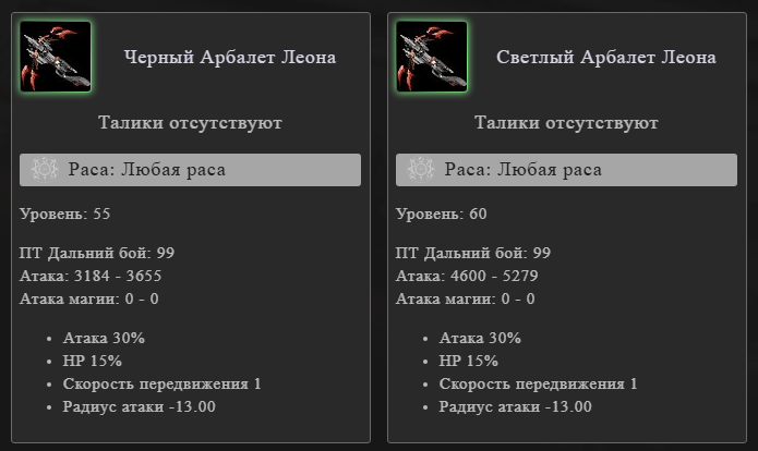 Описание: Леон арбалеты 35% атаки