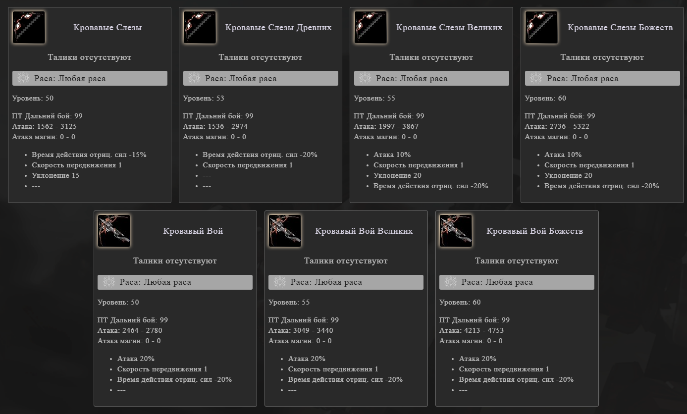 (Субьективное) За счёт свойства (20% у всех лвл) и базы пвп арбалеты жёстко доминируют над пвп луком. С 50+5, 100 обвесом, 55 допом, пдд, генами и бафами у королука верх с луком будет на 900 выше, чем с арбалетом. А низ на ~4.4к ниже.