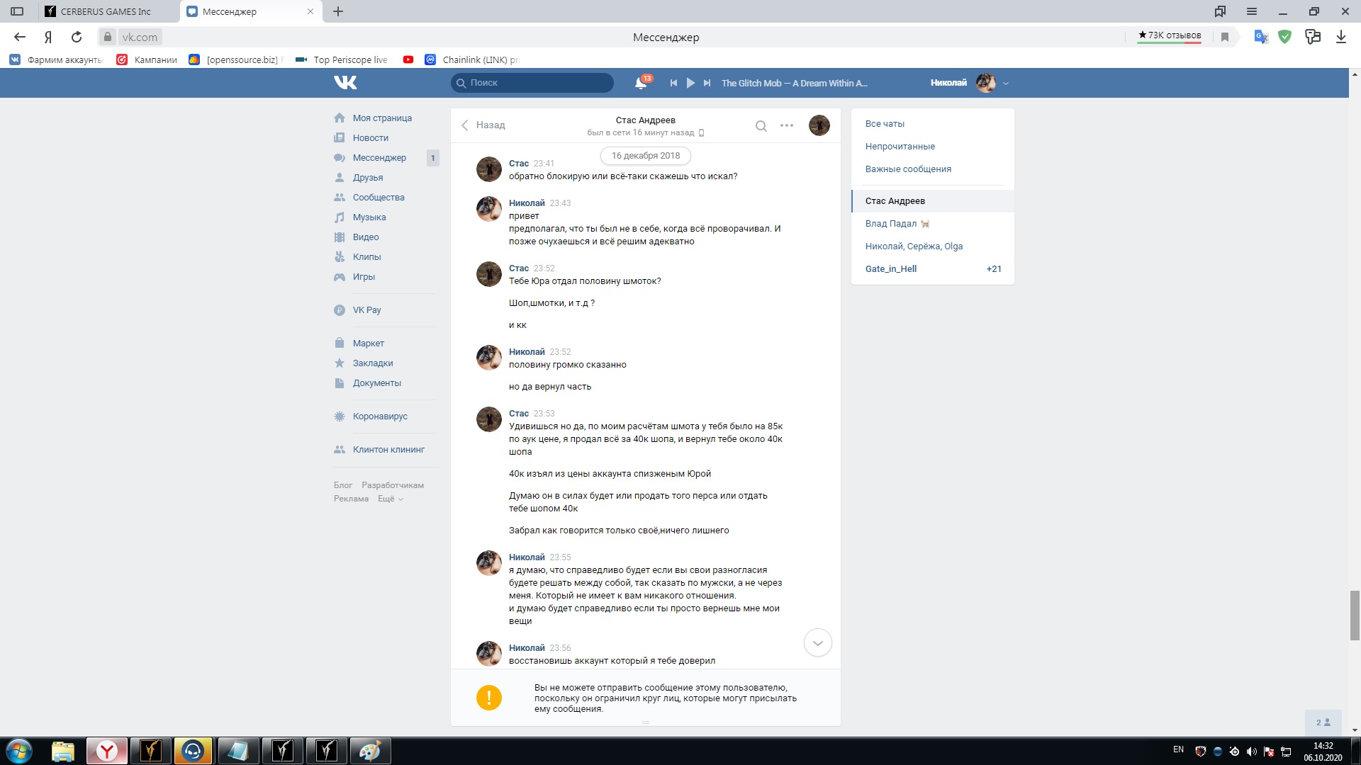 Так же есть переписка с Барсиком, но её выкладывать не буду, так как ссу выкладывать переписку с админом без разрешения.